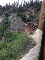 On Tuesday we arrived in Skagway Alaska (our second port of call), where we prepared to board the White Pass and Yukon Railway. This is a four- hour train ride into the mountains via the White Pass. While Ashley and I enjoyed the view from the car, our parents were free to watch from the open platform between the two cars. Locally, I was able to raise myself up to look out through the windows and see more of the views. At the top of the mountains, we briefly passed through Canada (we didn’t need our passports though) and later always down. See some of the pictures below.