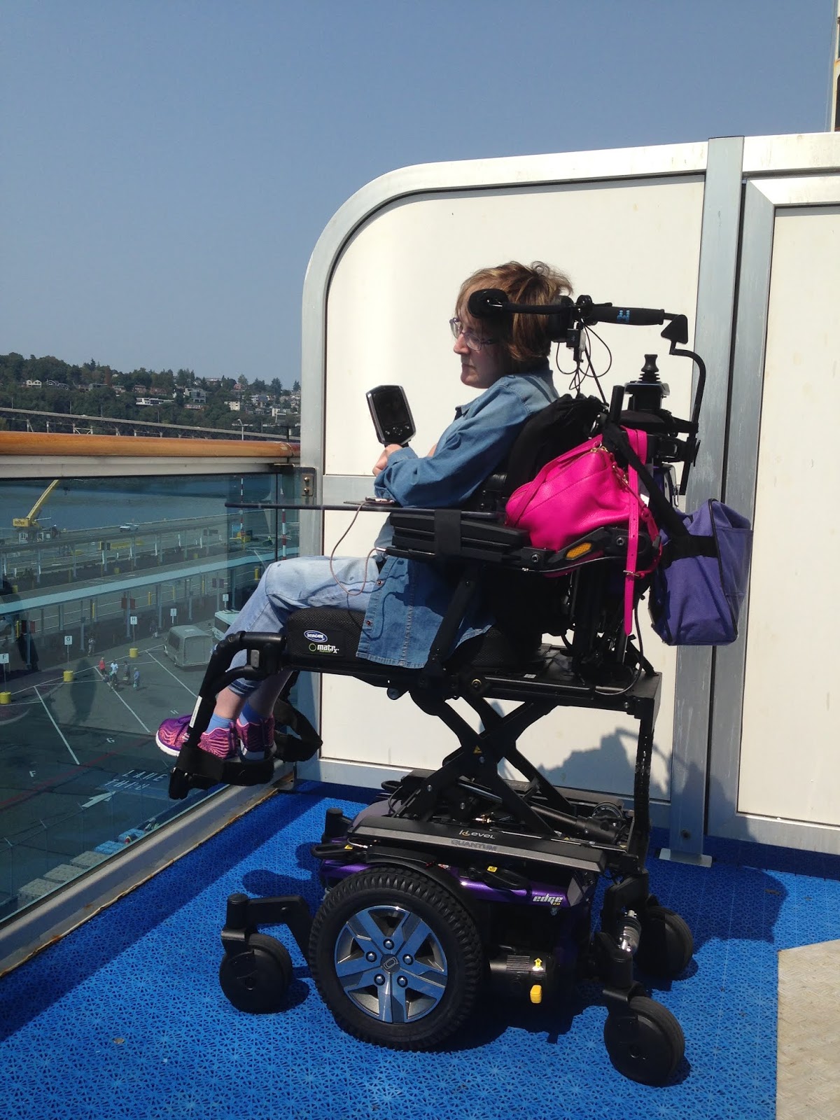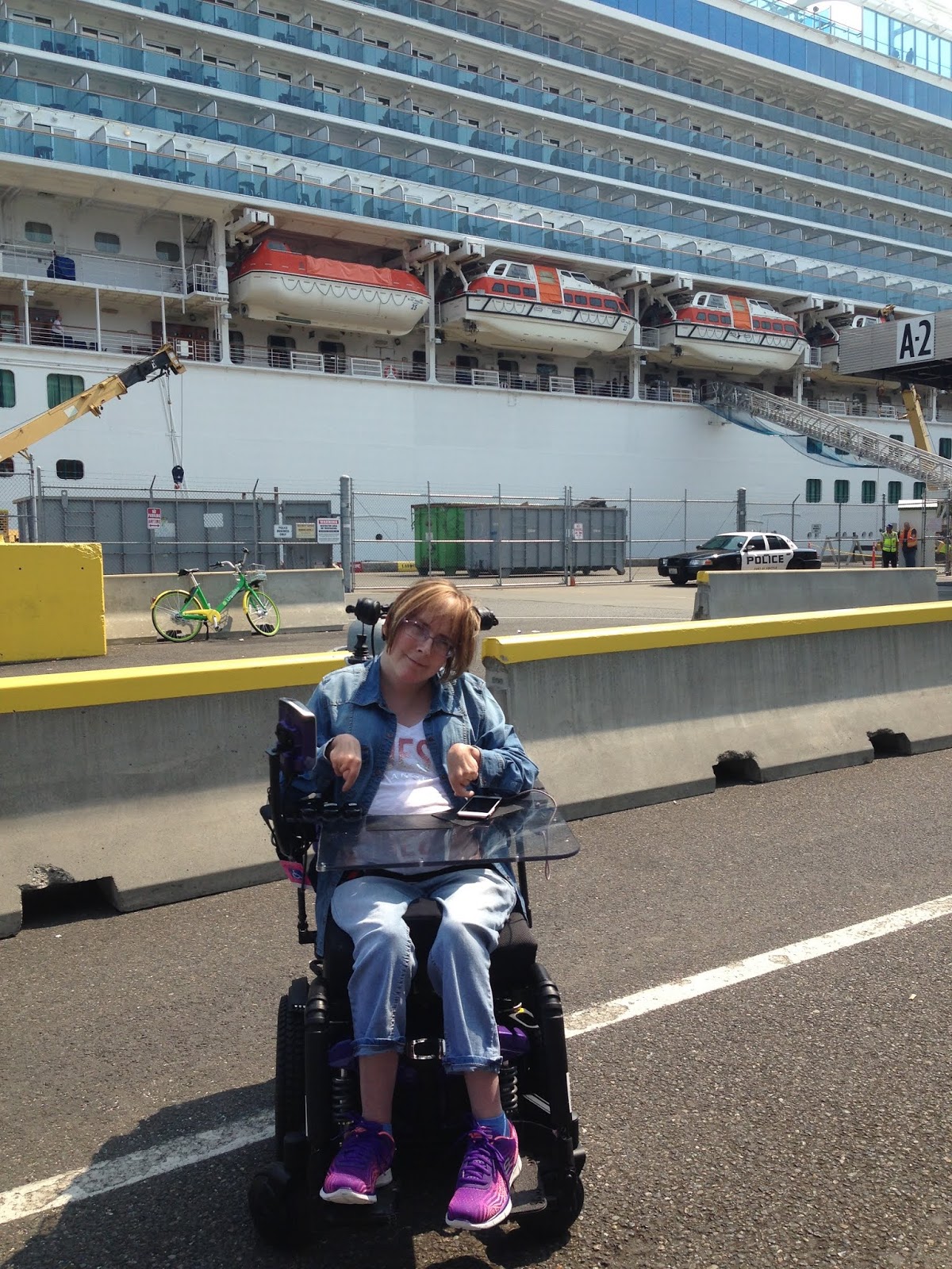 Despite the difficulties, I had a marvelous time going around the ship and out to the ports. The first evening everyone and I went to go see a musical production called “Magic To Do” in the Princess Theater. Exclusively for Princess cruises, this musical featured a compilation of songs from Stephen Schwartz. Some of these included Pippin, Godspell and many more. We also made quick friends with Ashley, Monica, George, and Joe. Their family and ours developed a deep connection when they realized I also had CP like their daughter, Ashley. (If that weren’t enough for coincidences, they too had purchased a wheelchair controlled by a head- array.) Since Ashley is only 15, they were happy to see the possibilities ahead for their daughter…