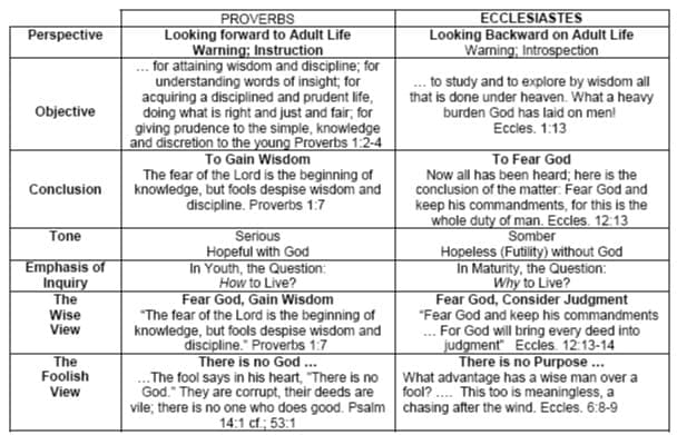 What a contrast to the Proverbs, also written by the hand of Solomon! The stunning contrast is summarized in the following table.
